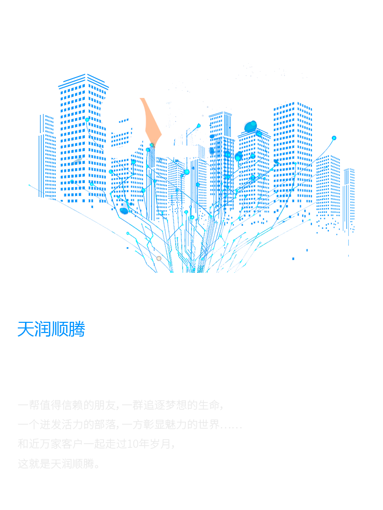 一幫值得信賴的朋友,一群追逐夢(mèng)想的生命, 一個(gè)迸發(fā)活力的部落,一方彰顯魅力的世界…… 和近萬家客戶一起走過10年歲月, 這就是天潤(rùn)順騰。